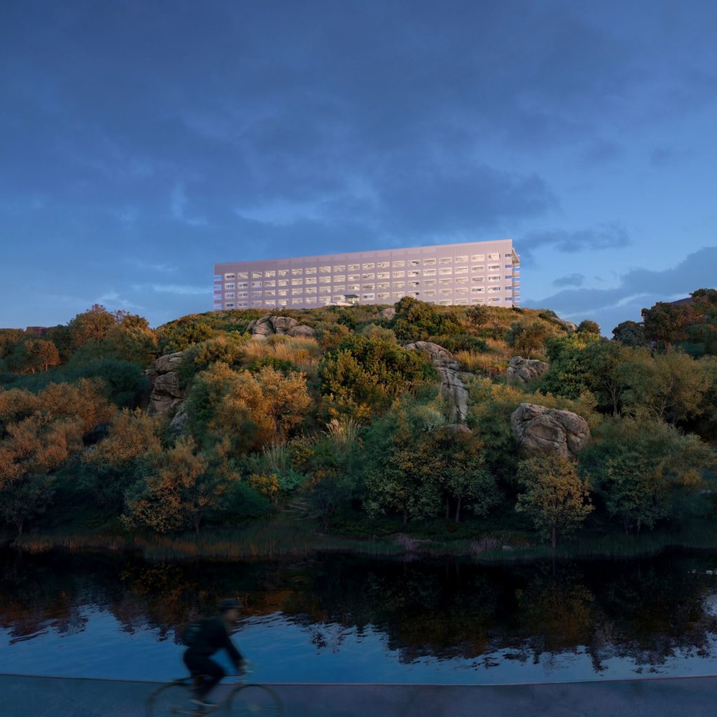 The groundbreaking ceremony on 24 February was held in the presence of Armenian Prime Minister Nikol Pashinyan. The building forms an extension of TUMO’s main campus and is positioned on a hilly outcrop overlooking the Hrazdan River Gorge, with views towards the city and Mount Ararat.